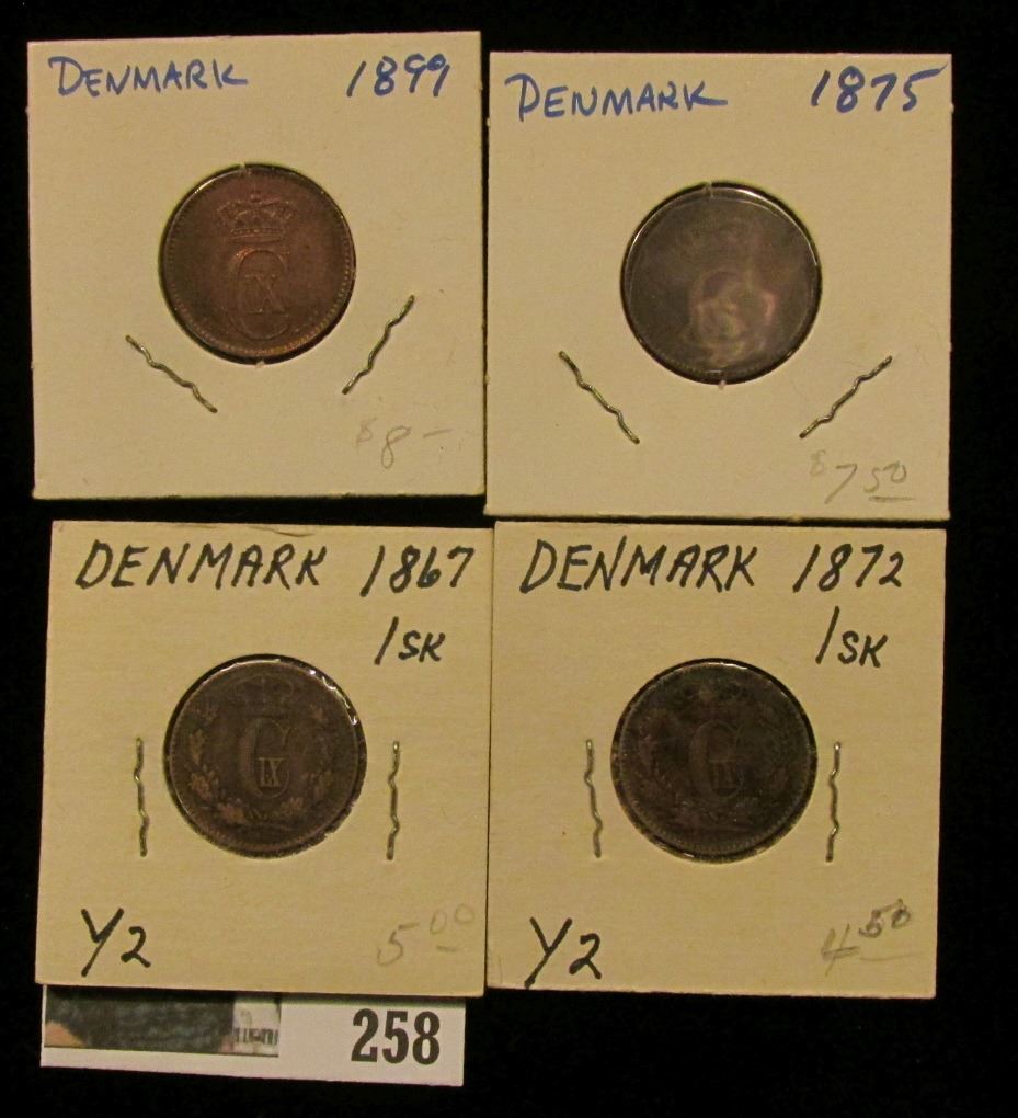 1867, 1872, 1875, & 1899 Denmark One Skilling Coins, all Fine to EF; 1967 "R& McNally" Road Atlas (u