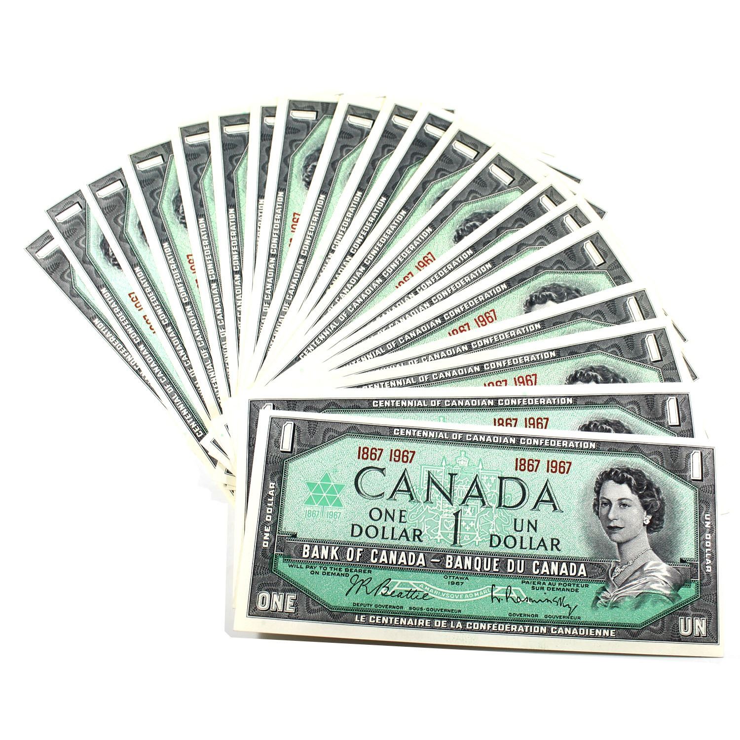 1867-1967 $1 Bank of Canada No Serial Number Notes UNC. 25pcs