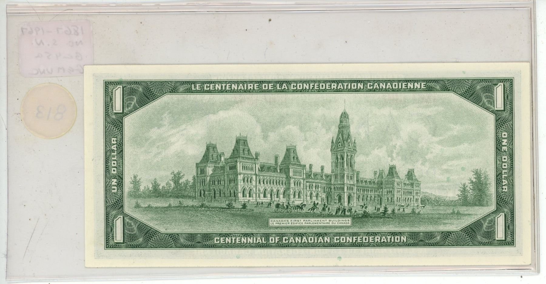 1867 – 1967 $1 Centennial note with No Serial Numbers. Beattie-Rasminsky signatures. BC-45a. Gem Uncirculated.