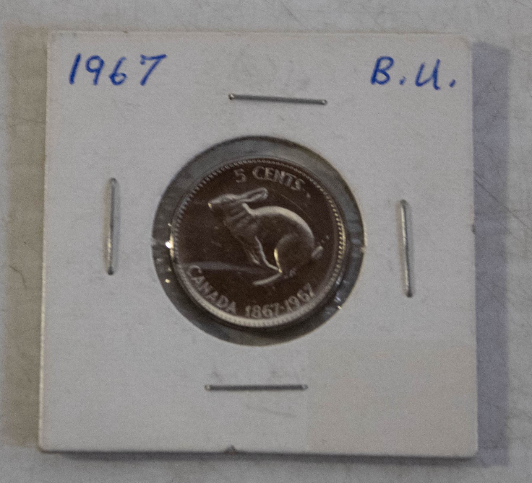 1867-1967 CANADA CENTENNIAL RABBIT 5 CENTS, BU