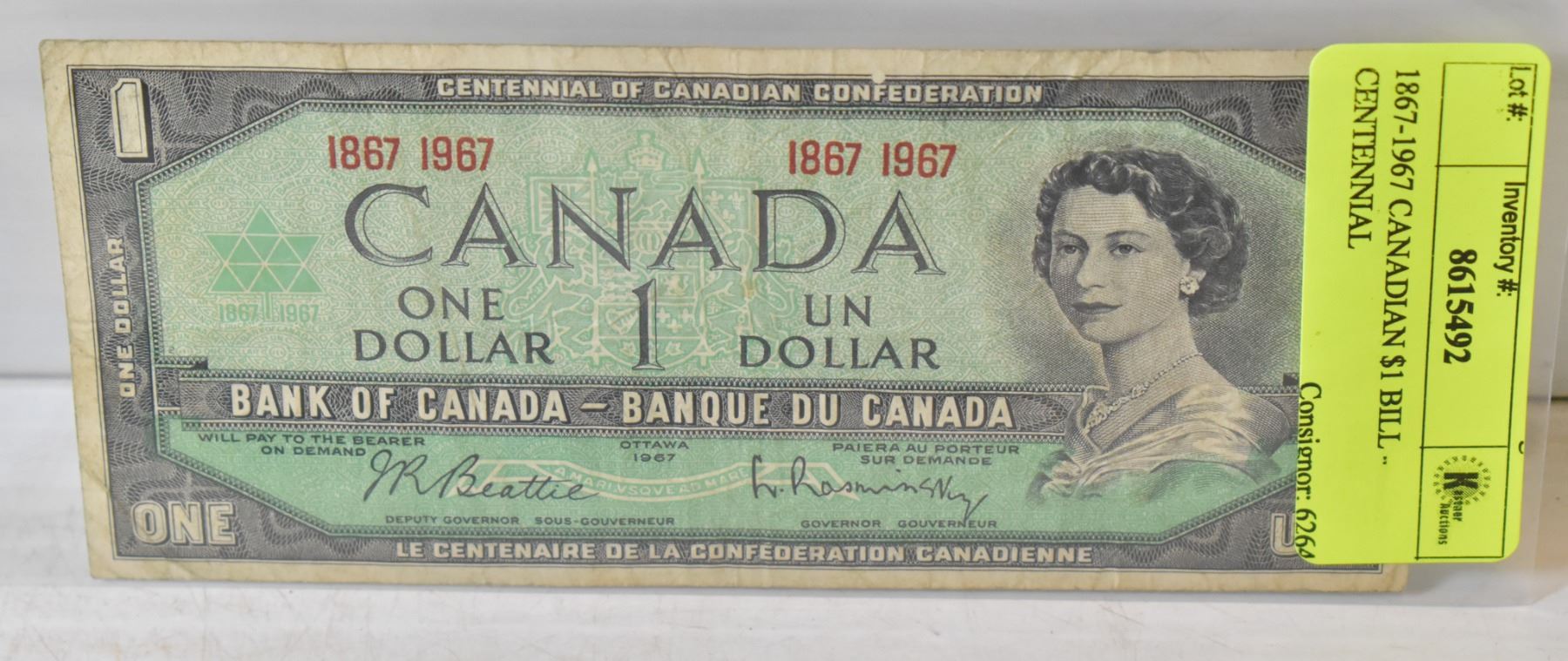 1867-1967 CANADIAN $1 BILL - CENTENNIAL