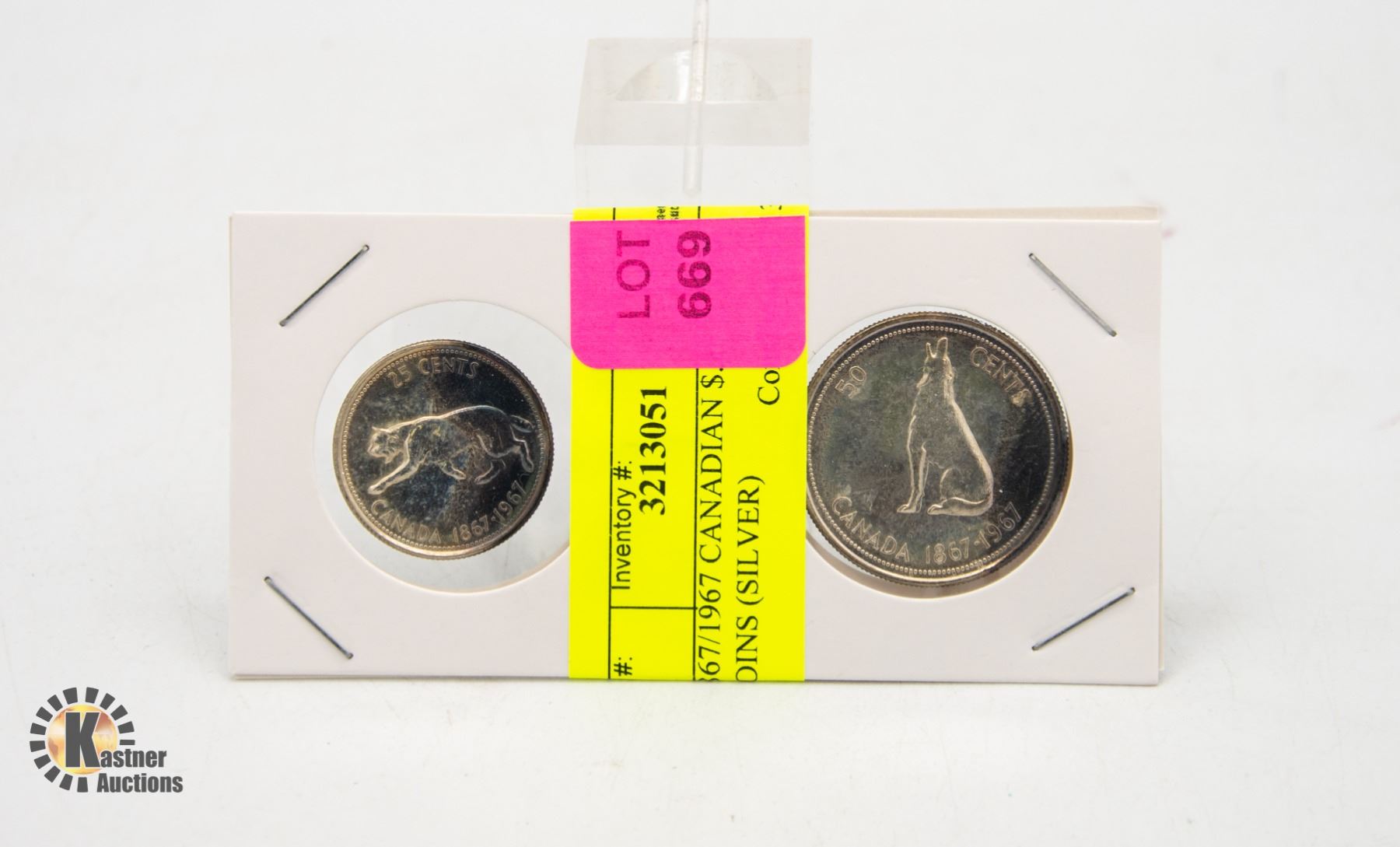 1867/1967 CANADIAN $.25 & $.50 COINS (SILVER)