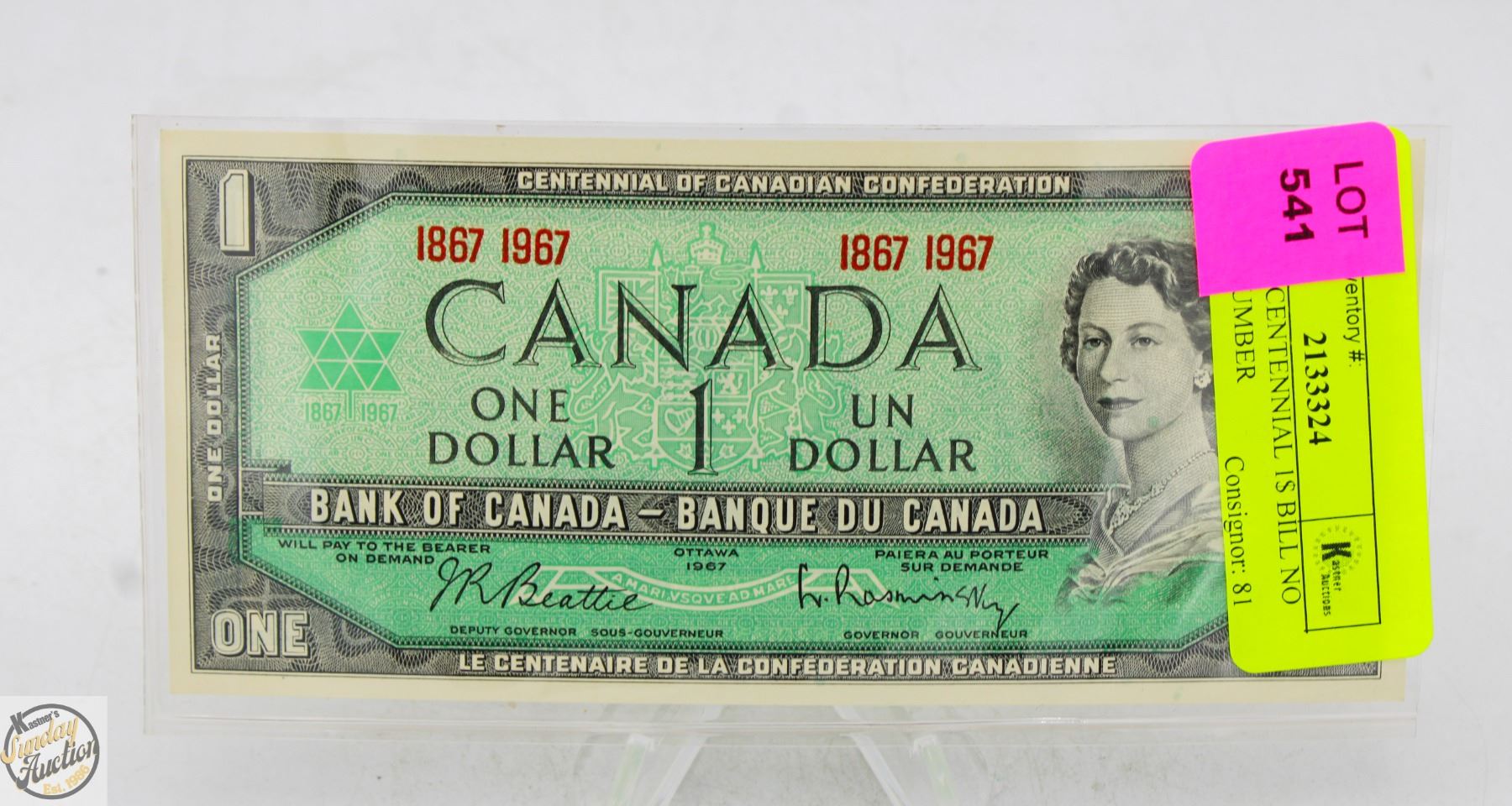 1867-1967 CENTENNIAL 1$ BILL NO SERIAL NUMBER