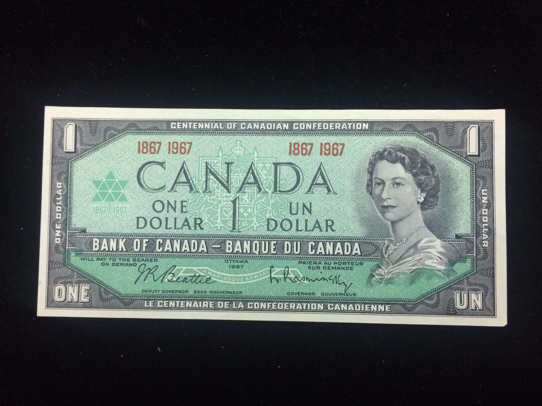 1867-1967 CENTENNIAL OF CANADIAN CONFEDERATION UNCIRCULATED ONE DOLLAR BANK NOTE