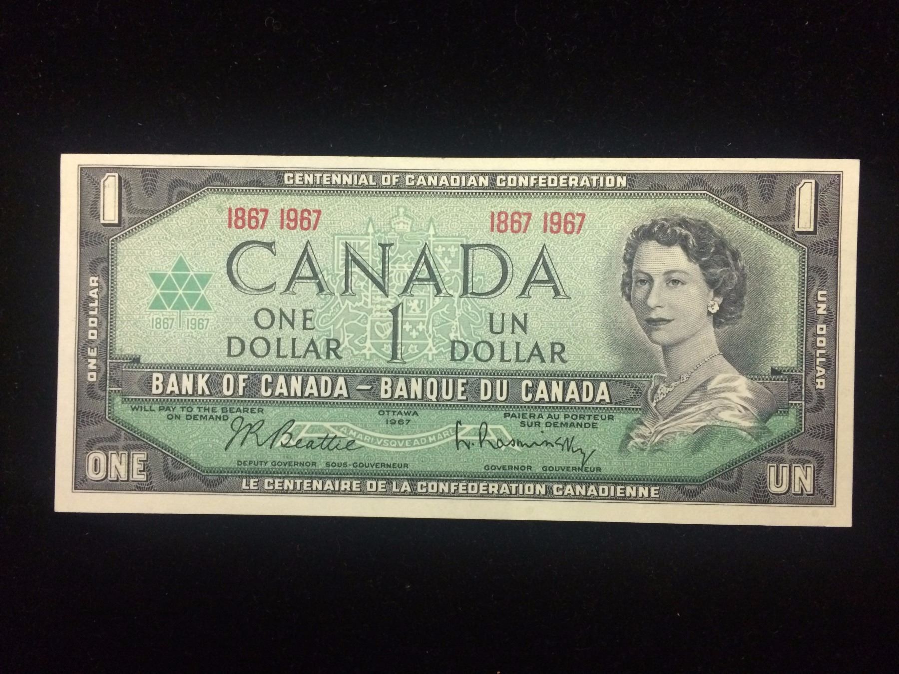 1867-1967 CENTENNIAL OF CANADIAN CONFEDERATION UNCIRCULATED ONE DOLLAR BANK NOTE