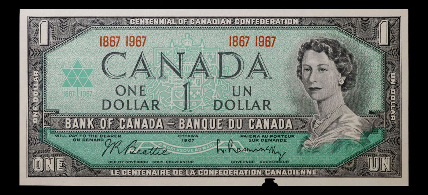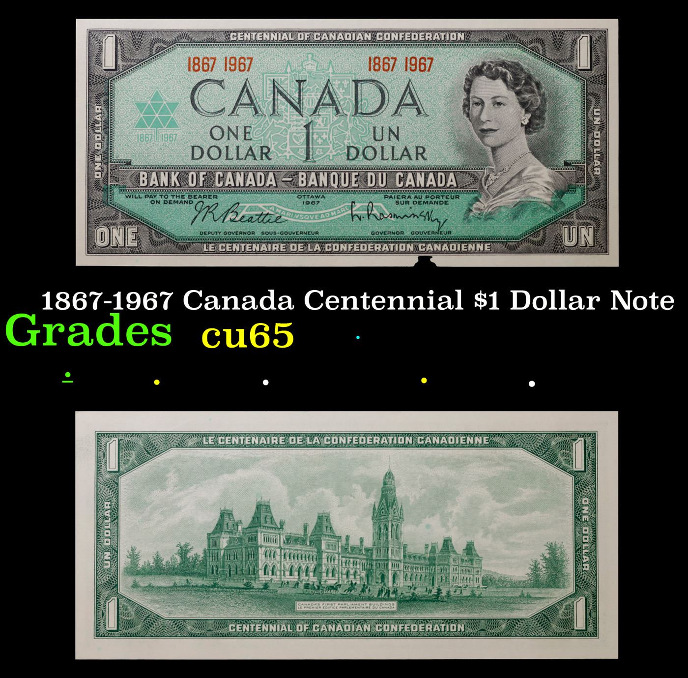 1867-1967 Canada Centennial $1 Dollar Note Grades Gem CU.