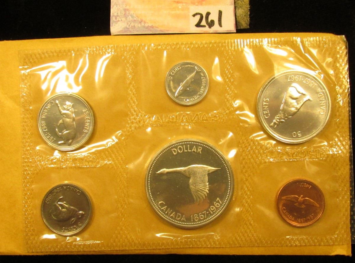 1867-1967 Canada "Confederation" Uncirculated Coin Mint Set in original cellophane and envelope as issued. Includes Cent to "Goose" Dollar.