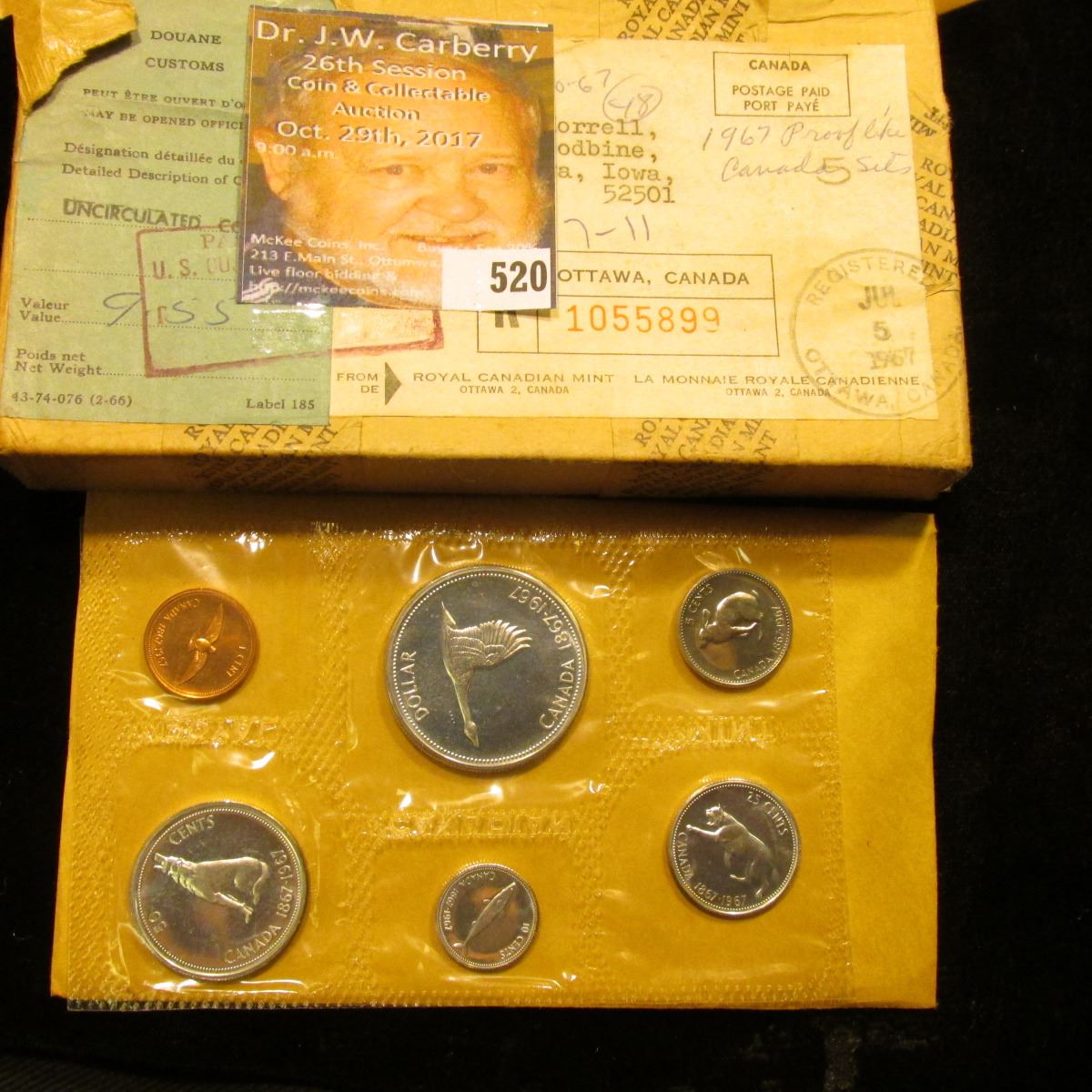 1867-1967 Canada "Confederation" Uncirculated Coin Mint Set in original cellophane and envelope as issued. Includes Cent to "Goose" Dollar in original Royal Mint packing box in which it was delivered to a member of the famous John Morrell Meat Products family.