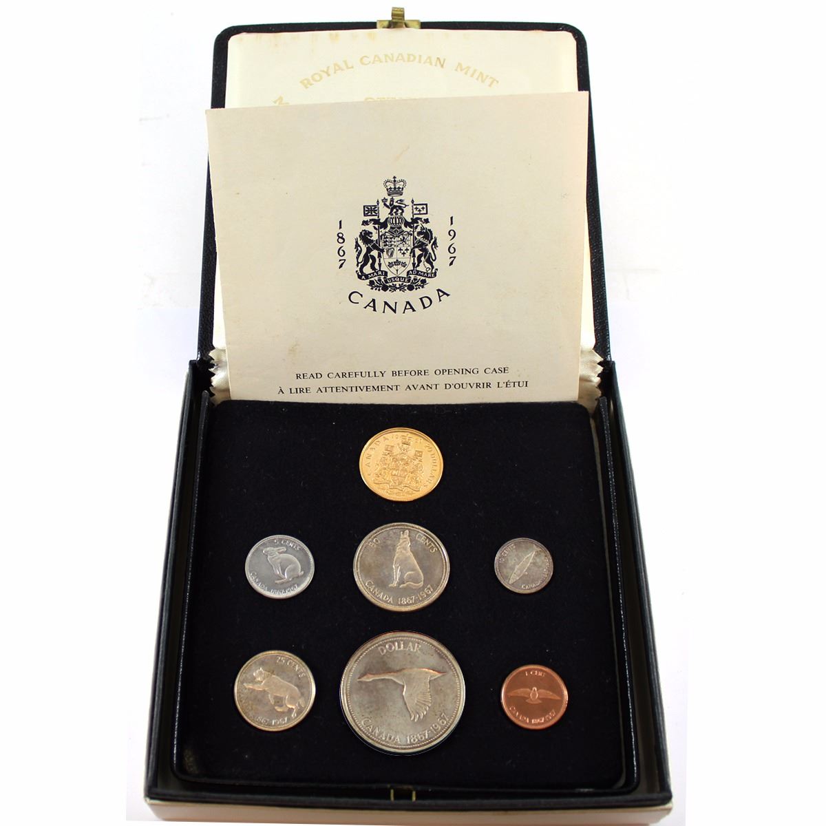 1867-1967 Canada Silver/Gold Confederation Commemorative Year Set with $20 Gold in Original Black Display (toned Silver Coins)