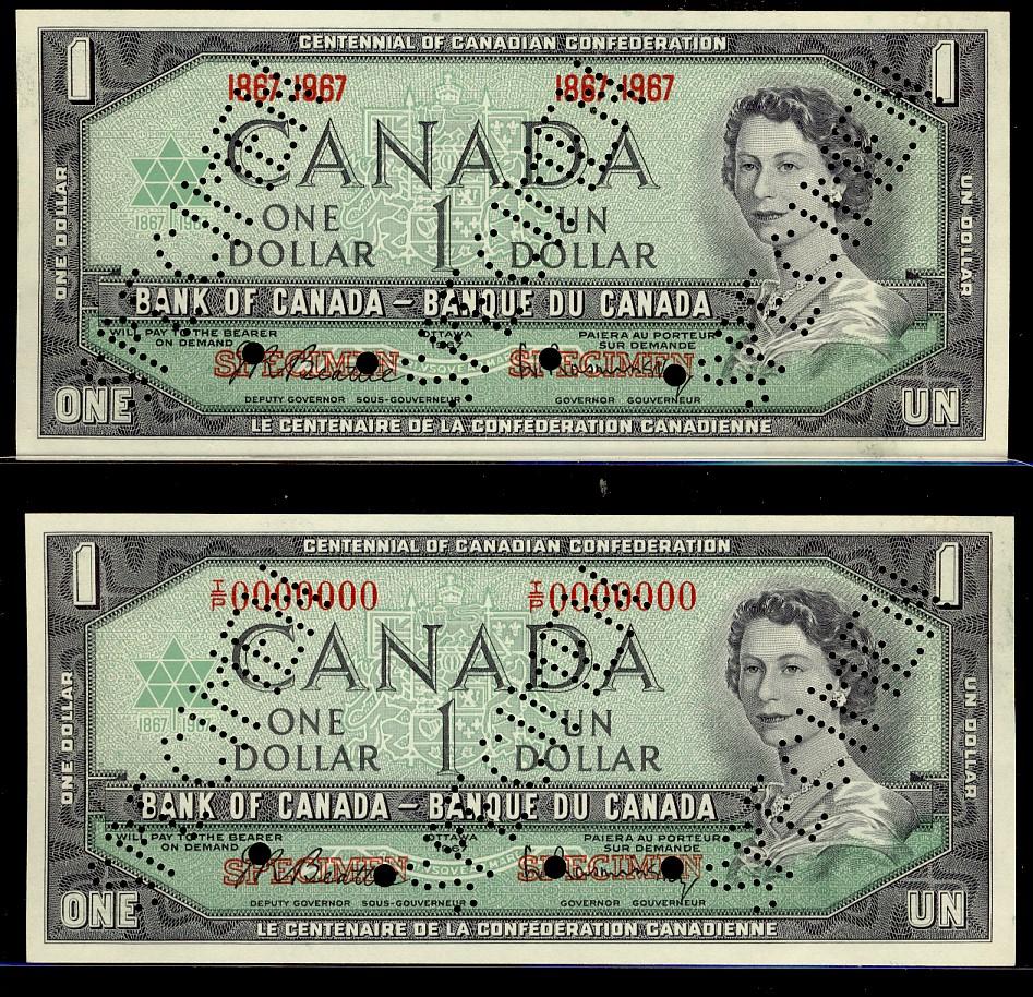 1867-1967 Centennial Issue Specimen Notes. Lot of 2 notes including BC-45aS and BC-45bS prefix I/P. #082 AU-UNC.