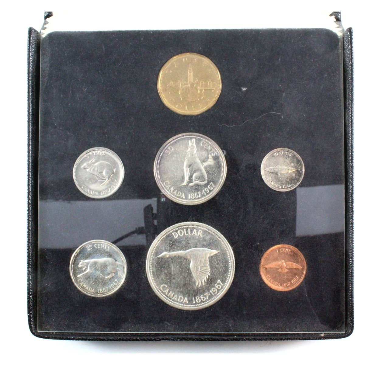1867-1967 Silver Centennial Year Set in Original Black Presentation Case from the Mint. This set includes the 1967 1ct, 5ct, 10ct, 25ct, 50ct, $1 and a 1992 Parliament $1 instead of the $20 Gold (toned). Buyers Premium will be added on all items as per our terms of sale. We accept Paypal, Credit Card, E-Transfer Payments, Cheque or Money Orders (there is an additional 3% fee for using Paypal or Credit Card). All invoices will be emailed immediately following the auction, please contact us if you would like to pay by credit card or receive a new revised lower total for mailing in payment or sending an e-transfer (3% discount). All Items Are Sold "AS IS", no returns