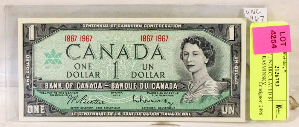 1867 1967 UNCIRCULATED $1 BEATTIE RASMINSKY