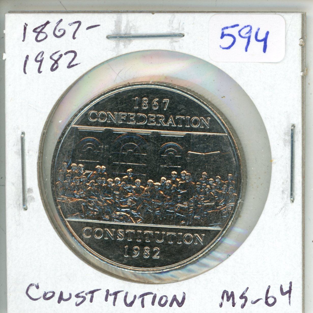 1867 – 1982 Nickel Dollar that commemorates both Confederation and the Canadian Constitution. MS-64.