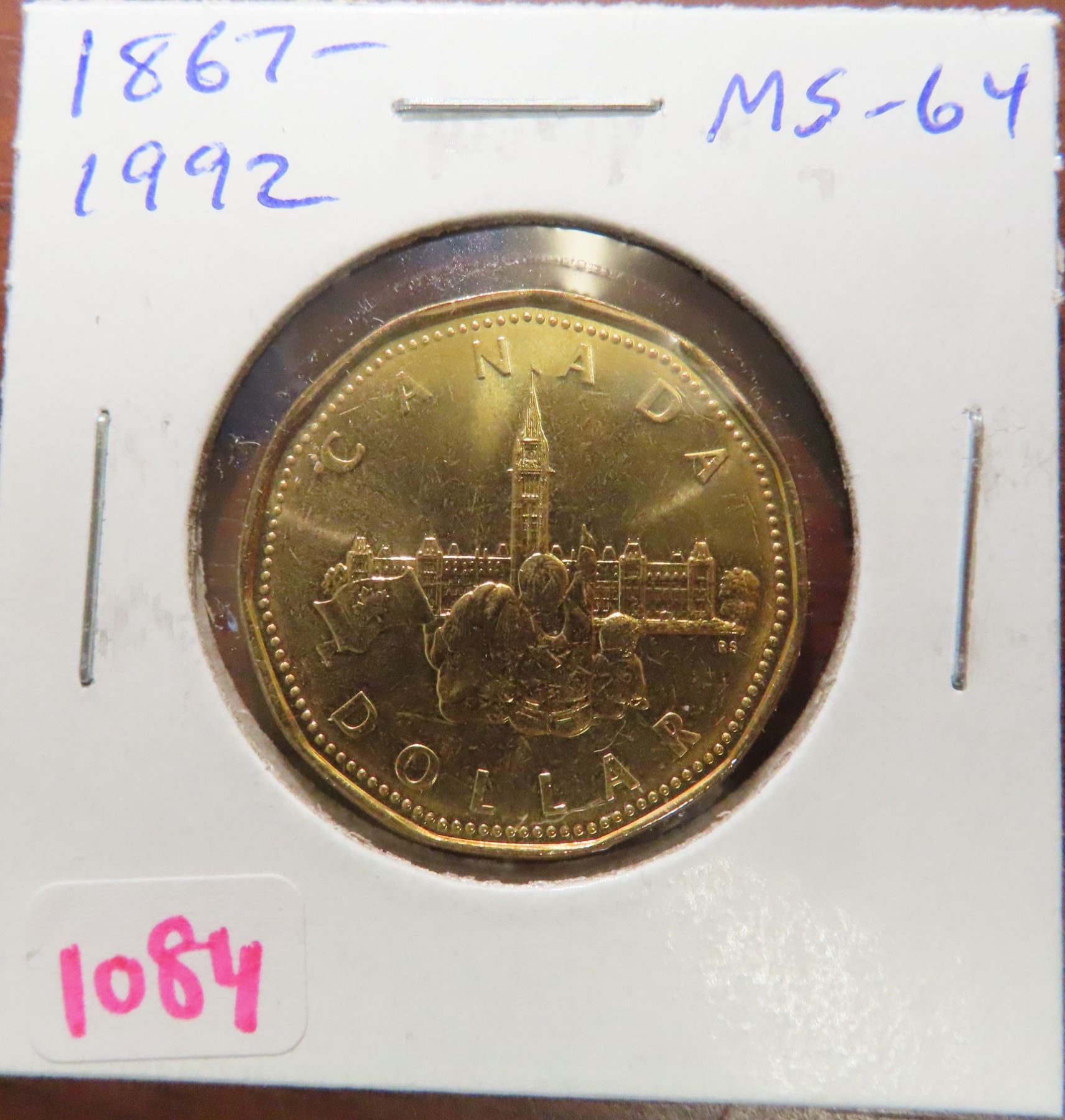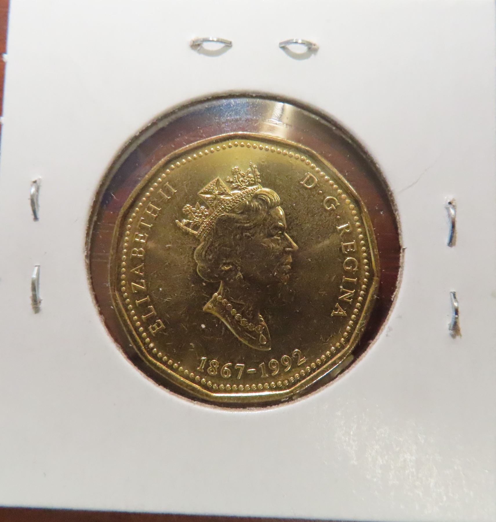 1867 – 1992 Canadian Loonie Dollar. Commemorates the 125th Anniversary of Canada. MS-64.
