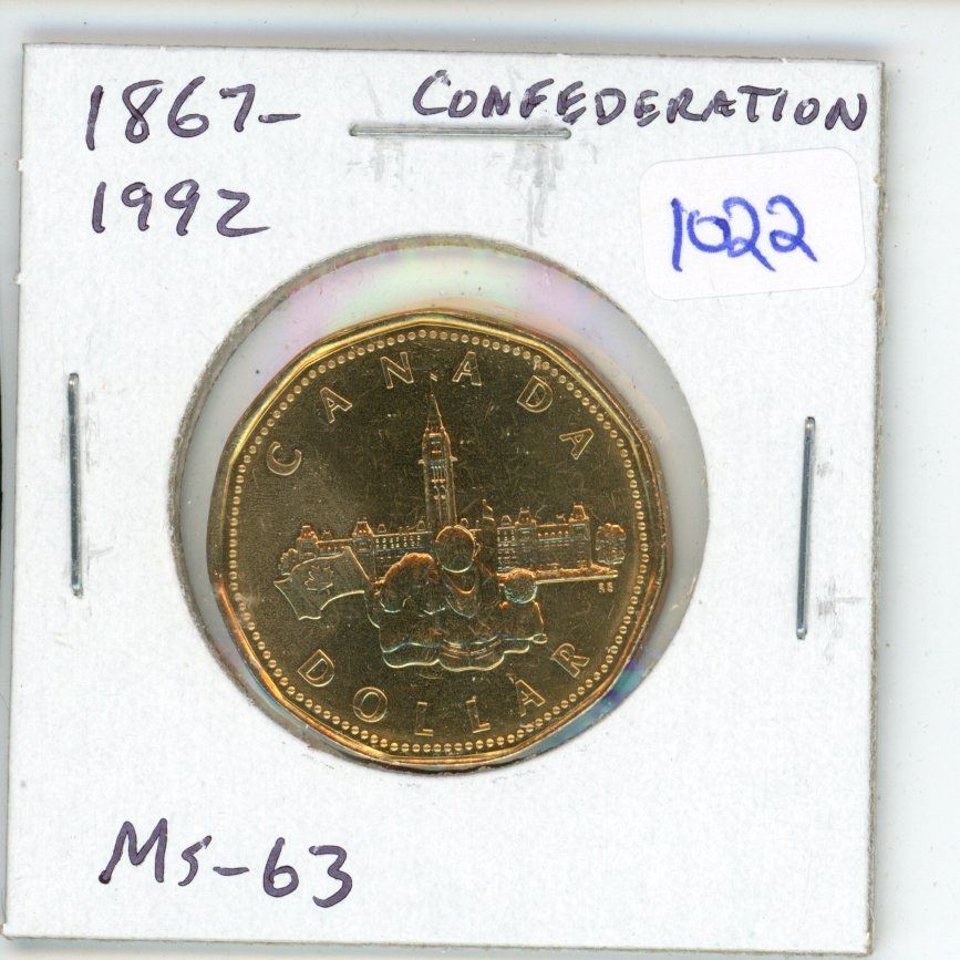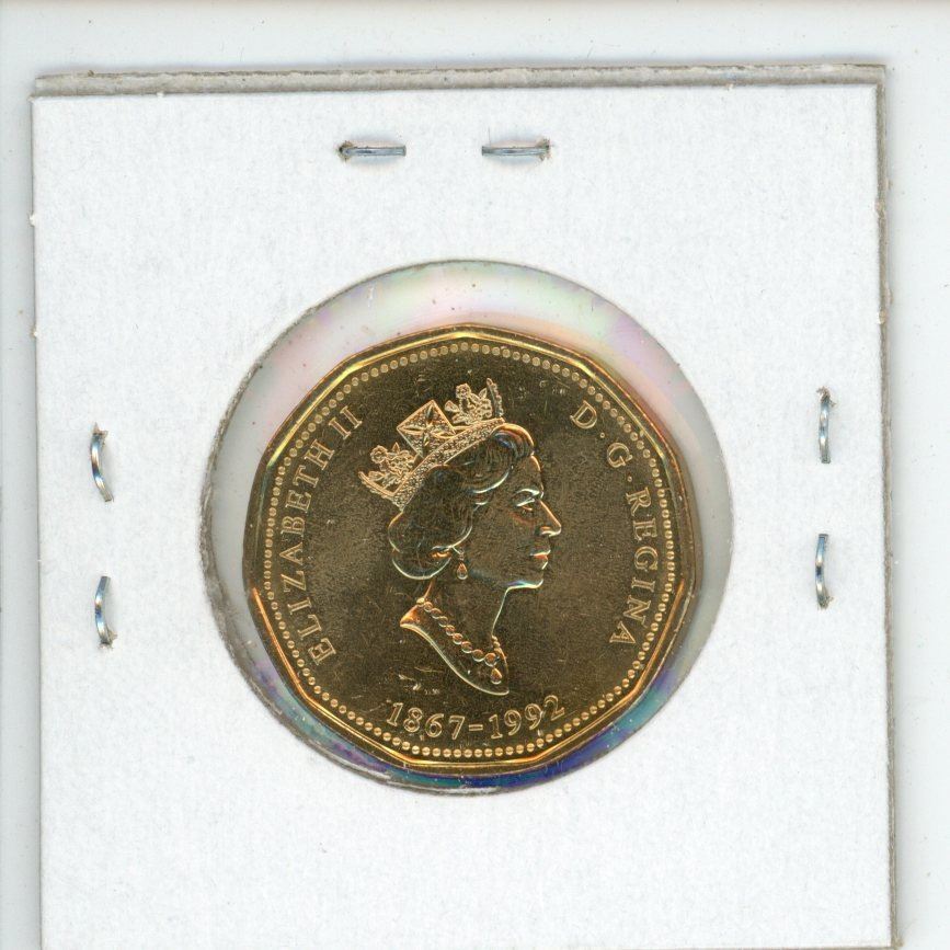 1867 – 1992 Confederation Loonie. MS-63 from an original Royal Canadian Mint roll.
