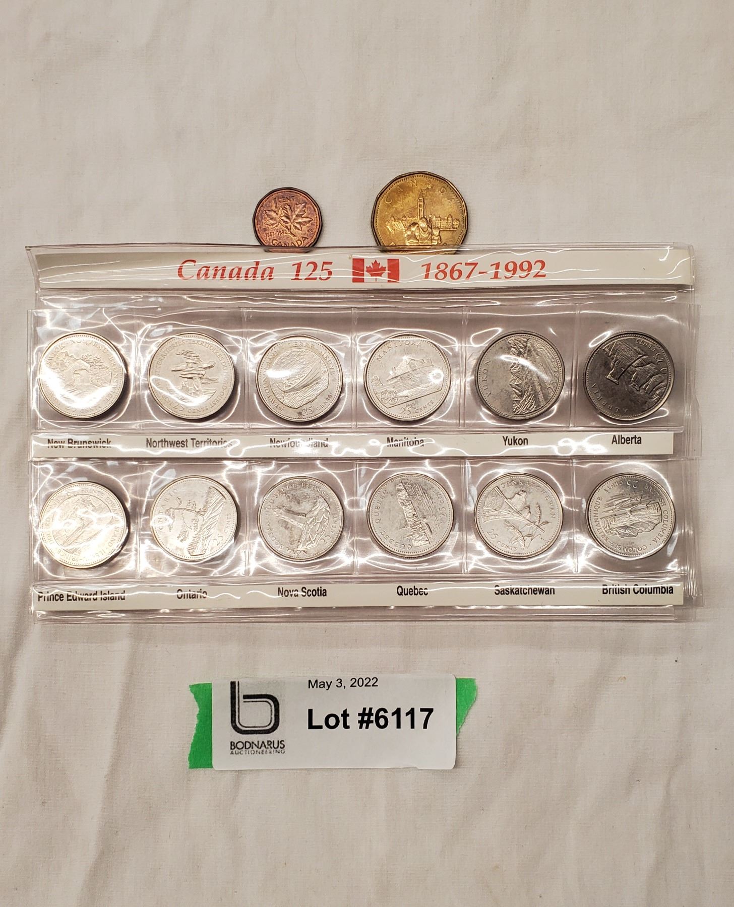1867-1992 Provincial Quarters set w/ loonie+penny