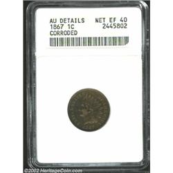 1867 1C--Corroded--ANACS, AU Details, Net XF40. Almost all of the fine original design details are intact, and the corrosion damage is not severe. The color is somewhat dark, but not unpleasant, and there are no visible abrasions. Important notice: We expect to be auctioning lots at the rate of 200-250 per hour. Sometimes eBay Premier live bid software cannot keep up with that pace, so we strongly recommend that you place a realistic proxy bid now as insurance to avoid disappointment. Also please note that all Heritage/CAA lots purchased through eBay Premier carry a 20% Buyer's Premium. Please make sure you read the Terms and Conditions.