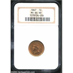 1867 1C MS64 Red NGC. Medium orange coloration dominates the outward appearance of this high grade r