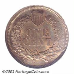1867 1C MS65 Red NGC. Even though 9.8 million pieces were struck of this issue, it remains very elusive with both well preserved surfaces and original coloration--a pairing that is consistently difficult among all early Indian Cents. This piece is sharply struck on the obverse with lesser details apparent on the reverse. The glossy red surfaces show a lively intermingling of lilac-olive green coloration. Population: 10 in 65, 0 finer (7/02). Important notice: We expect to be auctioning lots at the rate of 200-250 per hour. Sometimes eBay Premier live bid software cannot keep up with that pace, so we strongly recommend that you place a realistic proxy bid now as insurance to avoid disappointment. Also please note that all Heritage/CAA lots purchased through eBay Premier carry a 20% Buyer's Premium. Please make sure you read the Terms and Conditions.