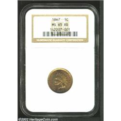 1867 1C MS65 Red NGC. Even though 9.8 million pieces were struck of this issue, it remains very elus