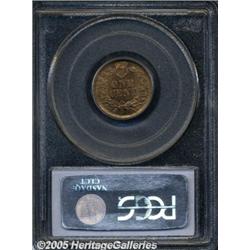 <B>1867 1C MS65 Red and Brown PCGS.</B></I> Lustrous surfaces display golden-brown patina, with traces of faded crimson and pale blue toning.