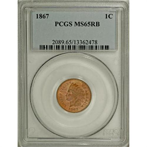 <B>1867 1C MS65 Red and Brown PCGS.</B></I> Salmon, copper-orange, and straw surfaces show just enough mellowing to deny a full Red designation. Pleasingly detailed with plenty of mint bloom and wonderful vibrancy. PCGS has graded only one finer Red and Brown piece (11/07).<BR><BR><B>Coin Engraver:</B> James B. Longacre<BR><BR><b>Shipping:</b> Coins & Currency (<a target="_blank" href="http://www.heritageauctions.com/common/shipping.php">view shipping information</a>)