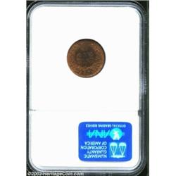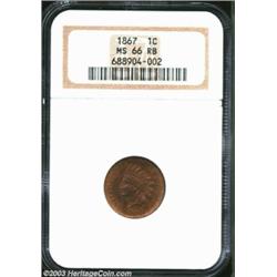 1867 1C MS66 Red and Brown NGC. A boldly struck Gem with luminous green-gold color at the borders, w