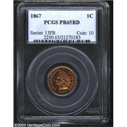 1867 1C PR65 Red PCGS. As an issue, the 1867 is more challenging to locate than the proof bronze Cen