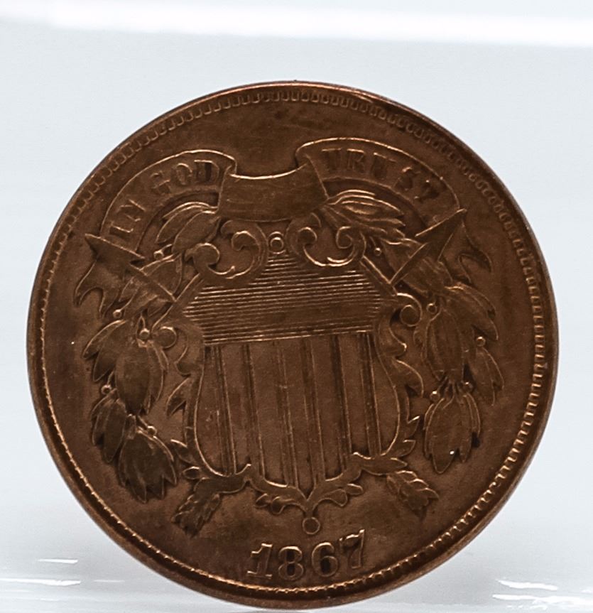 Bidders are advised that certain types of plastic may react with a coin’s metal or transfer plasticizer to notes and may cause damage. Caution should be used to avoid storage in materials that are not inert.