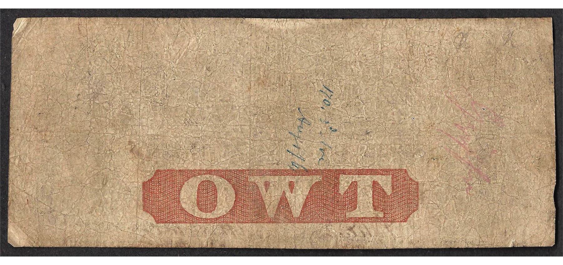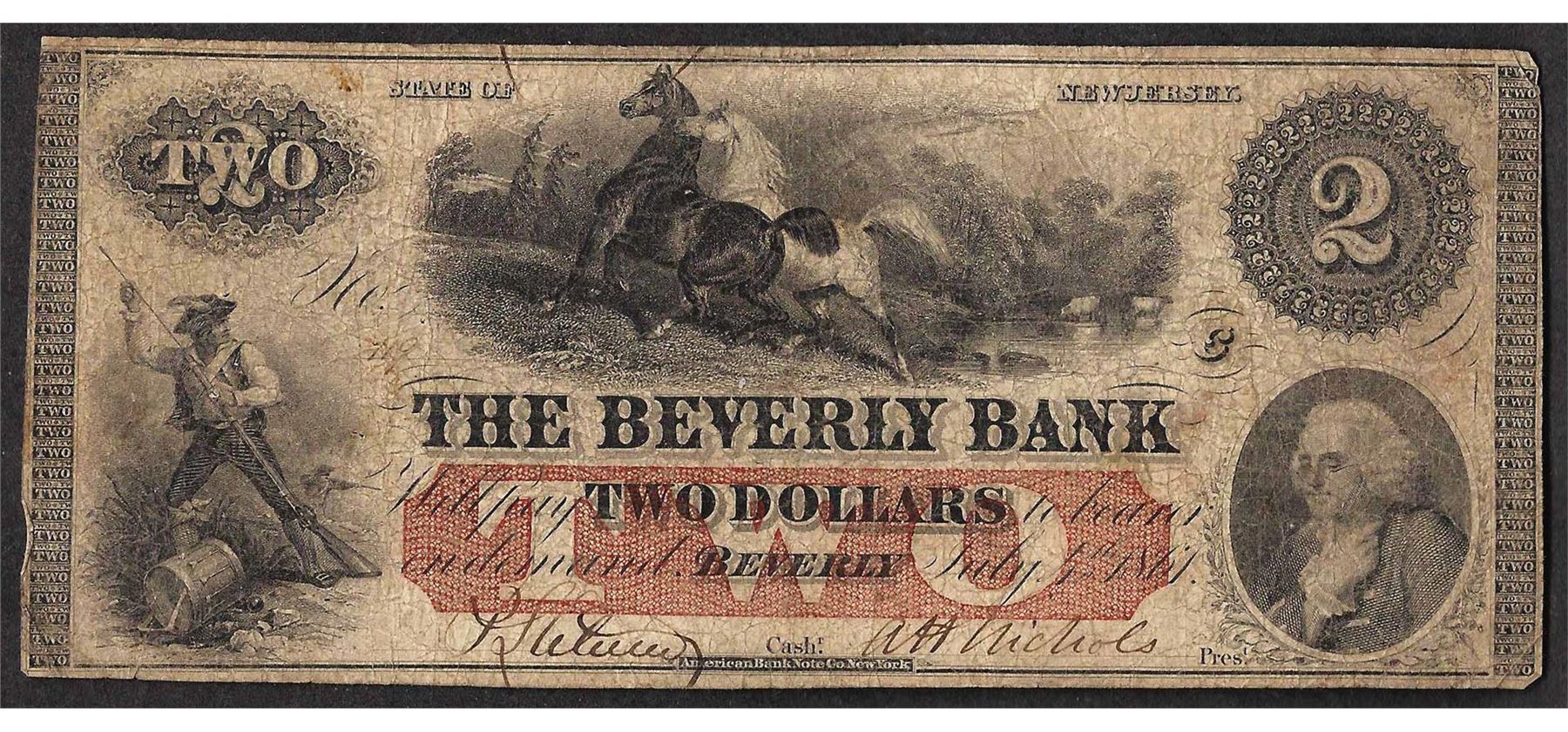 One 1867 $2 The Beverly Bank Obsolete Note.