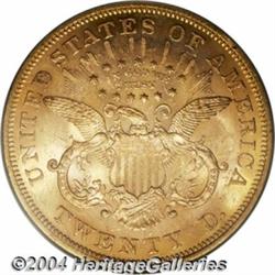 <table><tr><td><table><tr><td>1867 $20 MS62 PCGS. The 1867 is one of the few Type Two double eagles that are occasionally available in Uncirculated condition, the source being a hoard discovered in Europe in 1966. The surfaces of this piece are bathed in appealing orange patina, being confined to its assigned grade by a series of jagged abrasions on the obverse. Population: 17 in 62, 0 finer (3/04). <BR><BR><B>Important notice:</B> Heritage usually auctions material at the rate of 200-250 lots per hour. On some occasions eBay Live bid software or the Internet may not be able to keep up with the pace of the auction. We recommend placing a realistic absentee bid now as insurance to avoid disappointment. Occasionally the auctioneer may eliminate or reject an eBay Live bid, and the auctioneer may also reopen a lot after the close of the eBay live bidding (usually because we missed an audience bid), and may reject your bid even if it shows you as the winning bidder. By bidding via eBay Live, you agree that Heritage may award the lot to another bidder at its sole discretion under the circumstances described above or any other reasonable circumstances. Since eBay bids are not shown to us until we open the lot on the floor, we treat those bids just like floor bids. In most cases the floor responds before the eBay bid is presented to us, due to Internet lag time, so for consistency we have made it a policy that floor bids are always considered first over tie eBay live bids. Also please note that all Heritage lots purchased through eBay Live carry a 20% Buyer's Premium. Please make sure you read the Terms and Conditions before you bid. <BR><BR><B>IMPORTANT ANNOUNCEMENT ABOUT RESERVES:</B> Heritage now divulges all reserves on its web site 7 days before every auction. If you want to know whether the reserve on this lot has been met, and if not, what the reserve amount is, please visit this lot page on the HeritageCoin.com web site, or email: bid@HeritageGalleries.com </span></font></td></tr></table></td></tr></table>