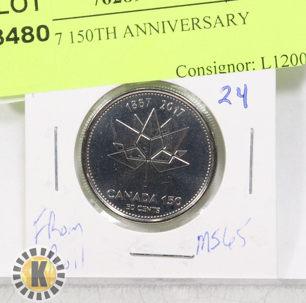 150TH ANNIVERSARY OF CANADA 50 CENT PIECE ONLY SOLD IN ROLLS LOW MINTAGE ONLIST BY GOVERNMENT OF CANADA TO RECALL AND MELT***ITEM(S) LOCATED IN LETHBRIDGE ALBERTA. SMALL ITEMS ONLY ARE AVAILABLE FOR FREE TRANSPORT TO EDMONTON OFFICE (READ AUCTION DETAILS FOR MORE INFORMATION)