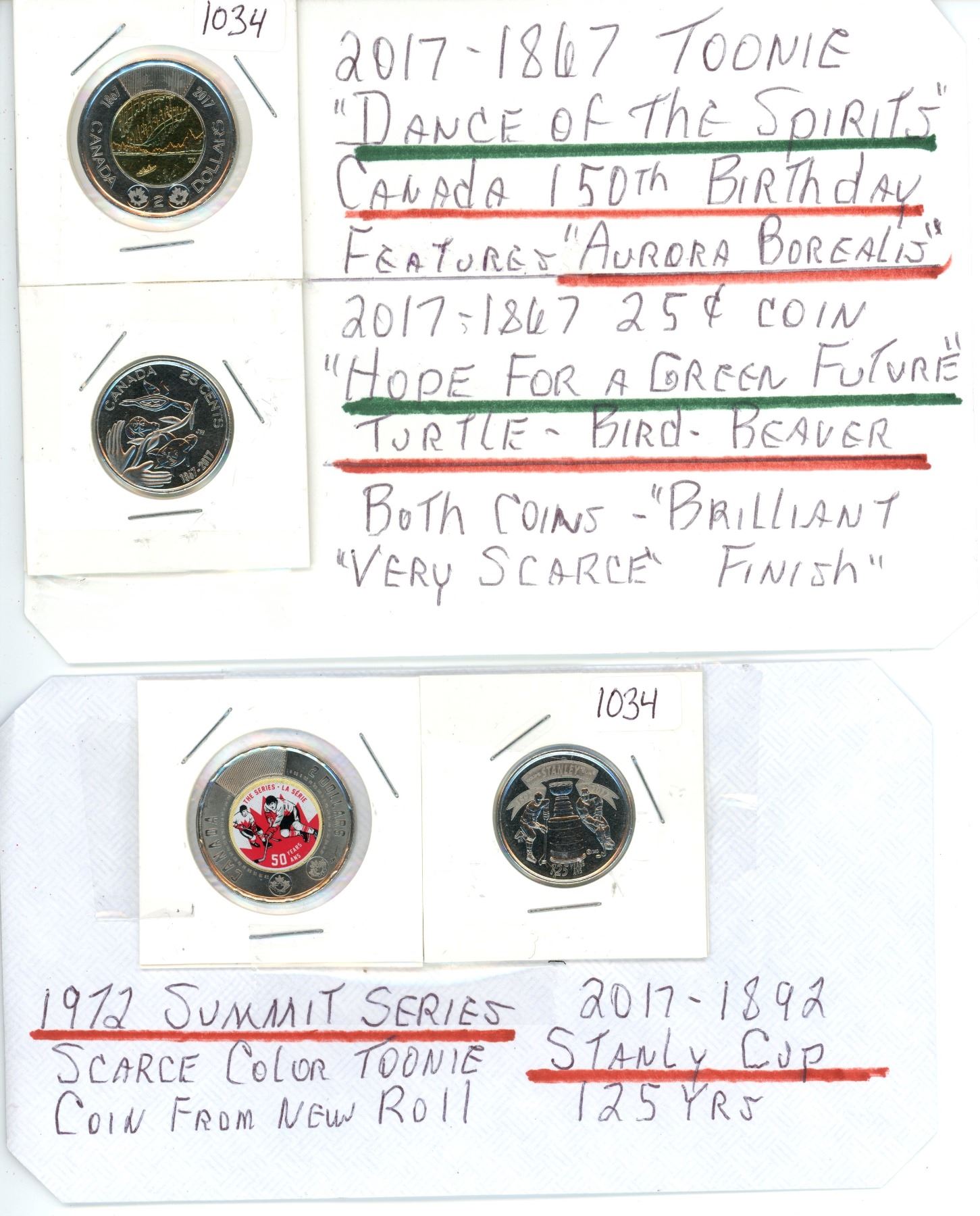 1867-2017 "Dance of the Spirits" Toonie and 1867-2017 "Hope for a Green Future" 25 cent coin & 1972-2022 "Summer Hockey series" Toonie and 1892-2017 Stanley Cup 25 cent coin
