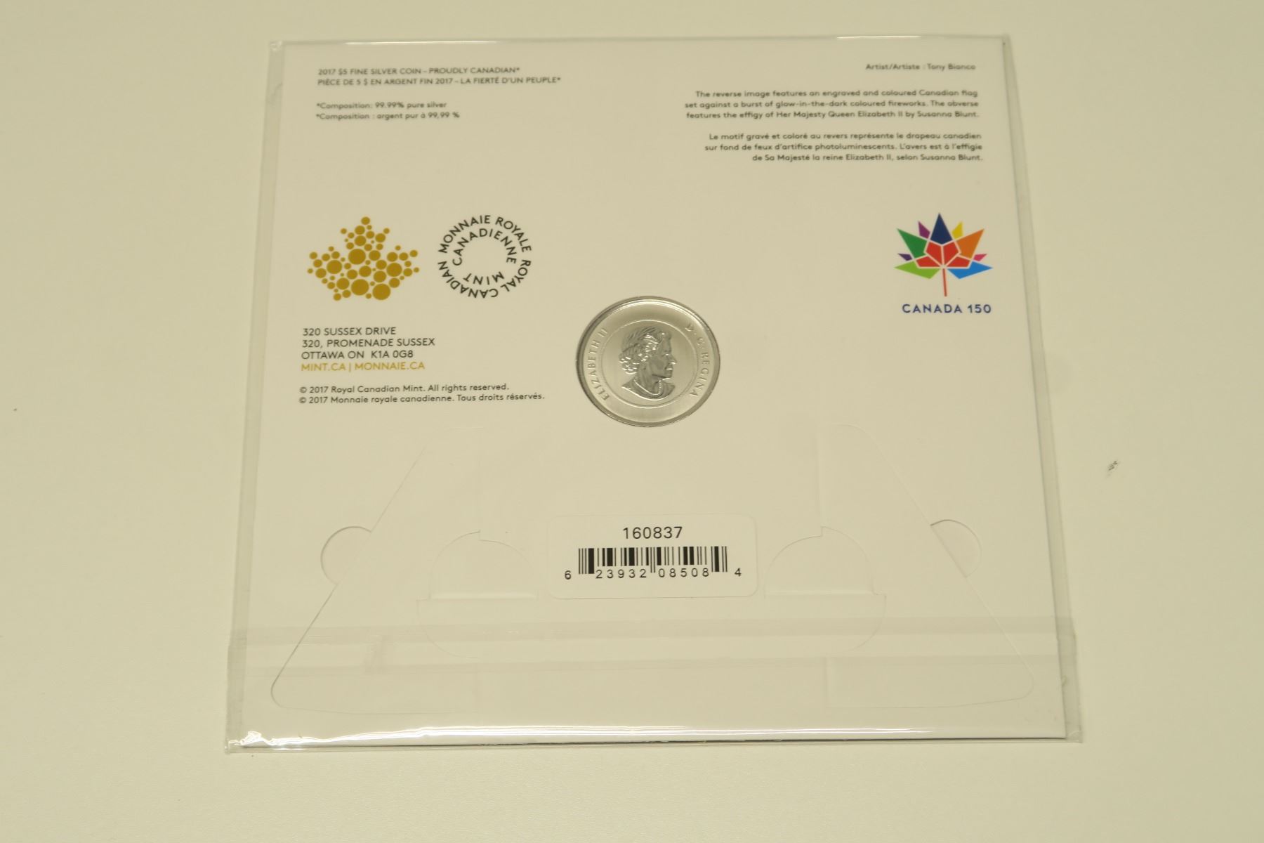 1867 – 2017 Proudly Canadian Colourized Canadian Flag $5. 99.99 pure Silver. In original unopened RCM folder.