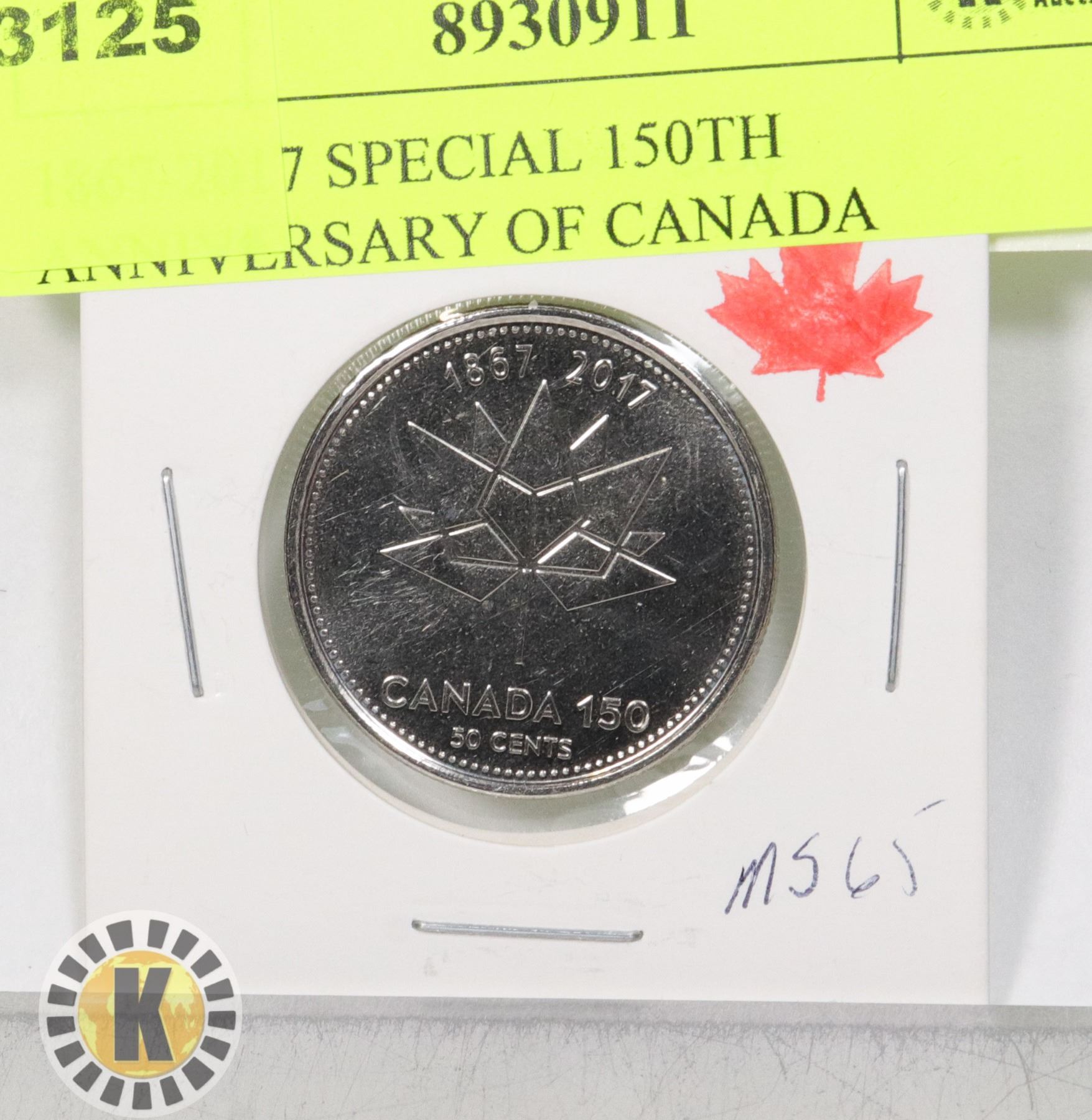50 CENT PIECE MS 65 FROM MINT ROLL. LOW MINTAGE. FIFTY CENT PIECES FROM 1987 TO DATE HAVEN'T ENTERED CIRCULATION IN ANY GREAT NUMBERS DUE TO HOARDING BY INVESTORS AND THE PUBLIC***ITEM(S) LOCATED IN LETHBRIDGE ALBERTA (PLEASE READ AUCTION DETAILS FOR INFORMATION ON TRANSPORTATION TO EDMONTON)