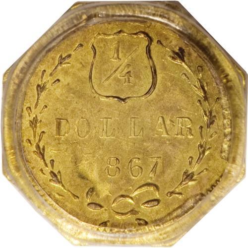 1867 25C Liberty Octagonal 25 Cents, BG-742, Low R.7,