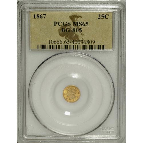 1867 25C Liberty Round 25 Cents, BG-805, Low R.5, MS65