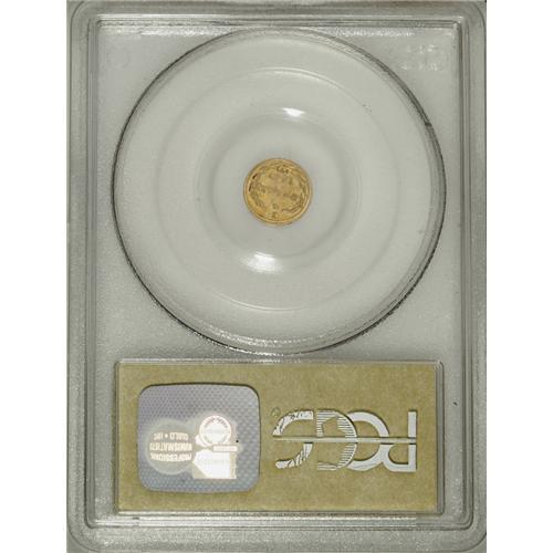 <B>1867 25C Liberty Round 25 Cents, BG-805, Low R.5, MS65 PCGS.</B></I> An unabraded Gem with moderate softness of strike on the 86 in the date. The mint-made retained laminations are more prominent on the reverse, although the obverse border also has minor laminations. Population: 7 in 65, 2 finer (3/07).<BR><I>From The Diamond K Collection of California Fractional Gold.</B></I><BR><BR><b>Shipping:</b> Coins & Currency (<a target="_blank" href="http://www.heritageauctions.com/common/shipping.php">view shipping information</a>)
