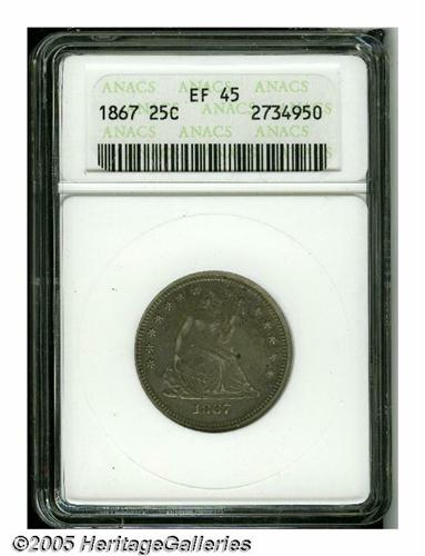 1867 25C XF45 ANACS. Only 20,000 business strikes