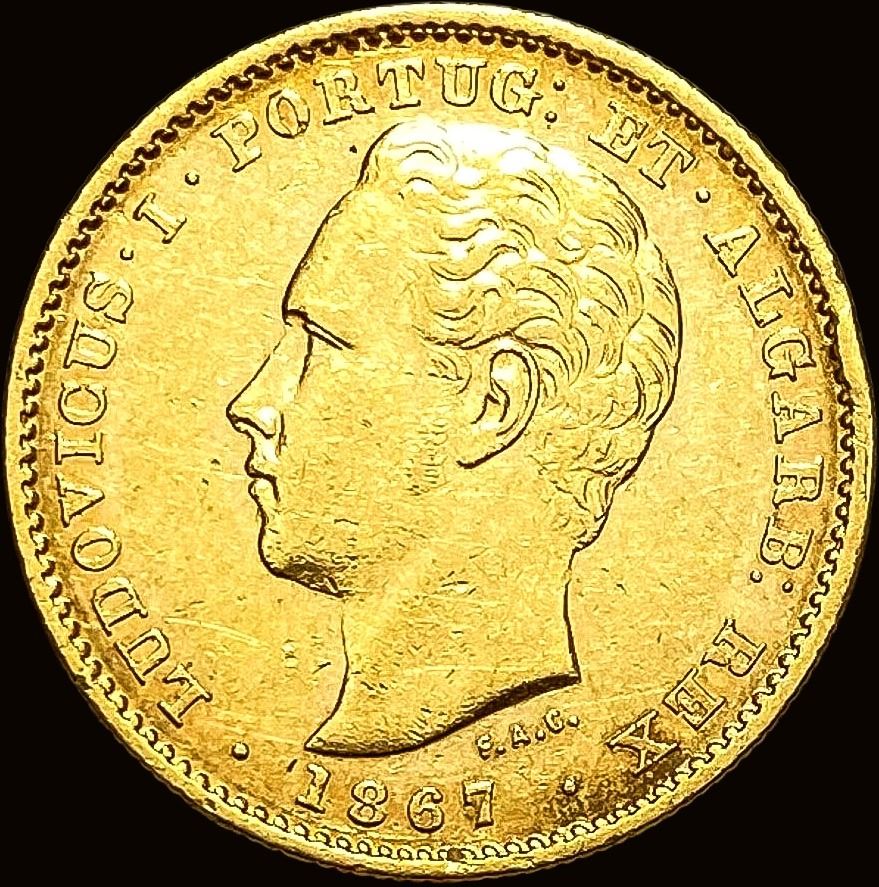 1867 .2613oz Gold Portugal Gold 5000 Reis CLOSELY UNCIRCULATED