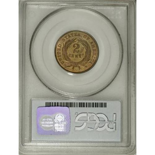 <B>1867 2C MS64 Red PCGS.</B></I> Olive-gold and copper-orange shades bathe the surfaces of this well struck two cent piece. Minor peripheral carbon is noted on the obverse, while the reverse shows similar dots within the wreath. Population: 34 in 64 Red, 20 finer (10/07).<BR><I>From The Parker Lee III Collection.</B></I><BR><BR><B>Coin Engraver:</B> James B. Longacre<BR><BR><b>Shipping:</b> Coins & Currency (<a target="_blank" href="http://www.heritageauctions.com/common/shipping.php">view shipping information</a>)