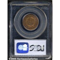 <B>1867 2C PR64 Red PCGS.</B></I> A razor-sharp cherry-red near-Gem, exceptional for the grade. A small mint-made strike-thru near the bottom of the shield provides a pedigree marker for future auction appearances. Population: 27 in 64, 22 finer (2/05).