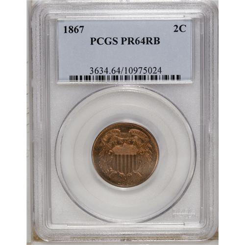 1867 2C PR64 Red and Brown PCGS. Sharply struck with d