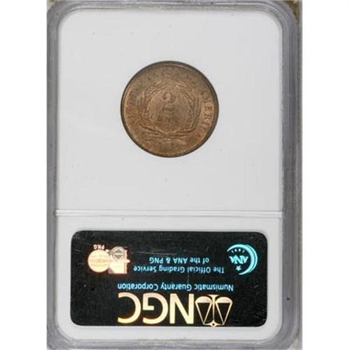 <B>1867 2C MS63 Red and Brown NGC.</B></I> NGC Census: (26/164). PCGS Population (83/198). Mintage: 2,938,750. Numismedia Wsl. Price for NGC/PCGS coin in MS63: $160. (#3592)<BR><BR><B>Coin Engraver:</B> James B. Longacre<BR><BR><b>Shipping:</b> Coins & Currency (<a target="_blank" href="http://www.heritageauctions.com/common/shipping.php">view shipping information</a>)