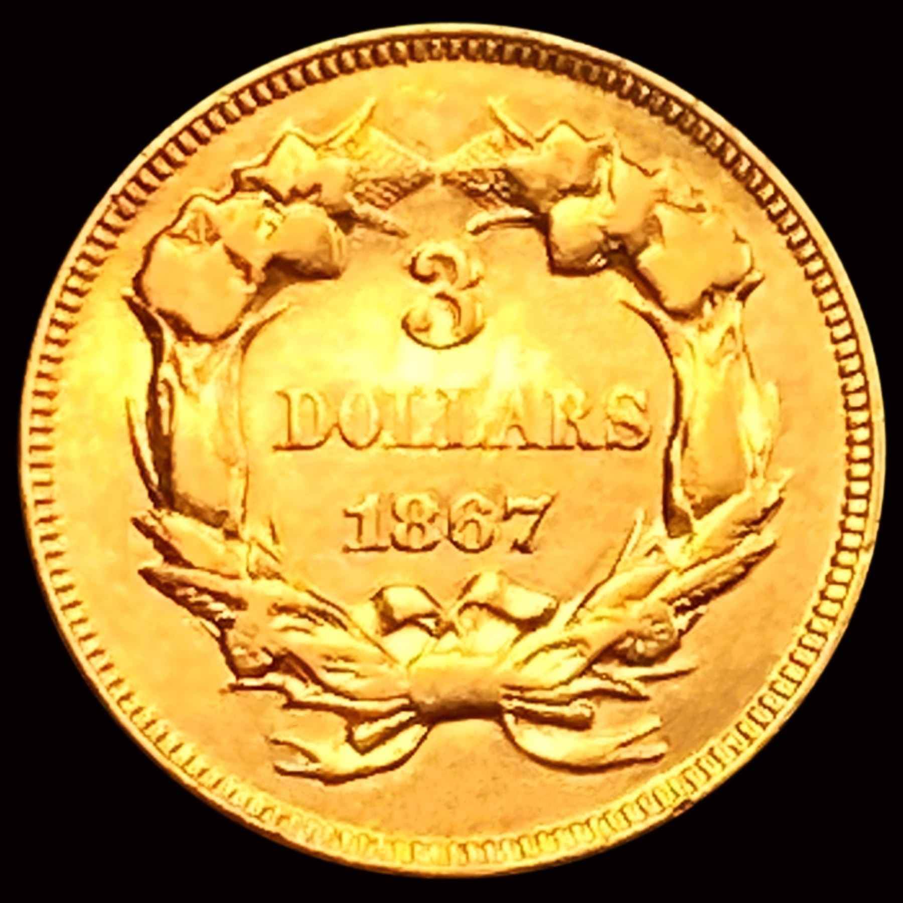 1867 $3 Gold Piece CHOICE AU