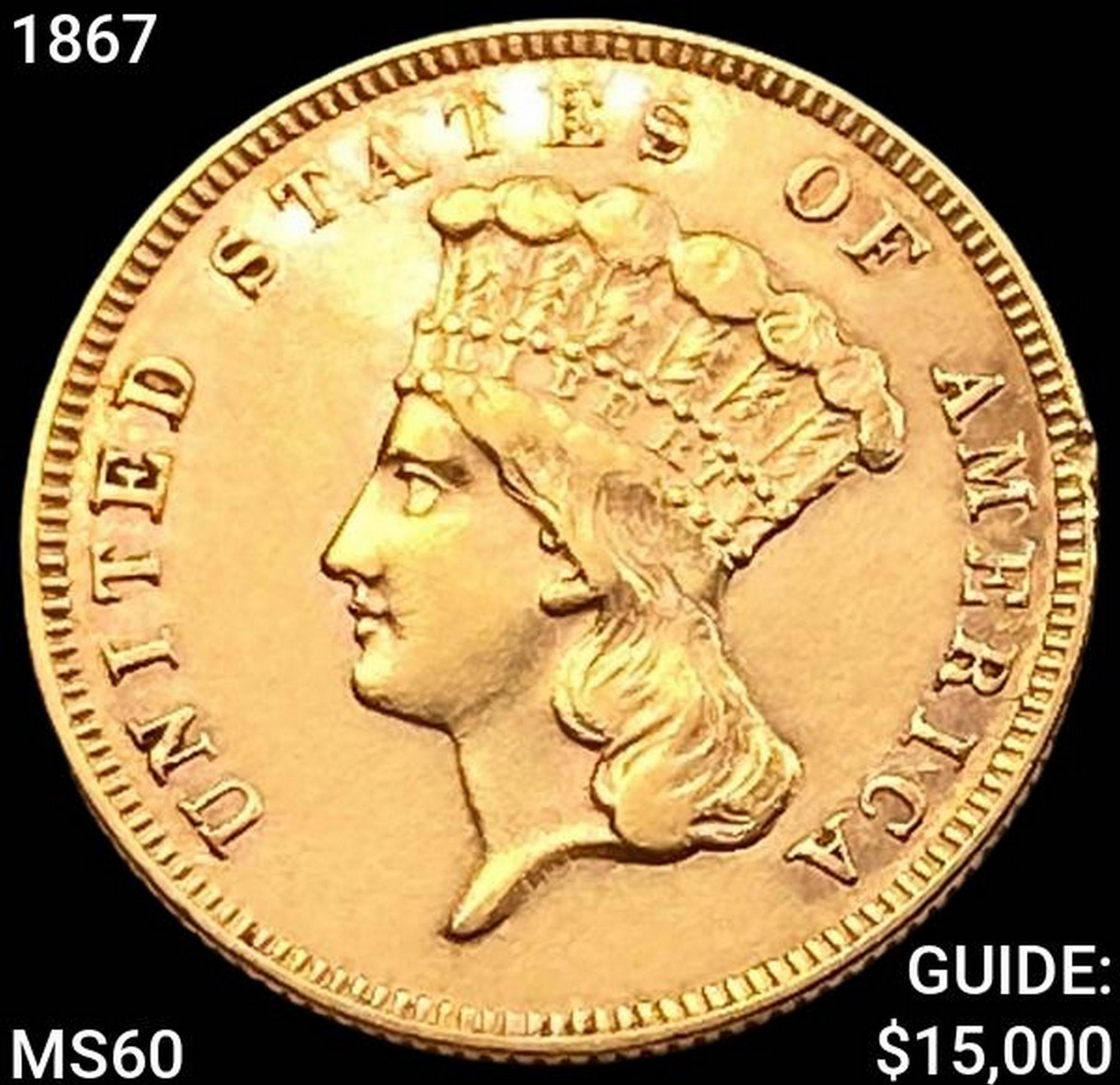 1867 $3 Gold Piece UNCIRCULATED