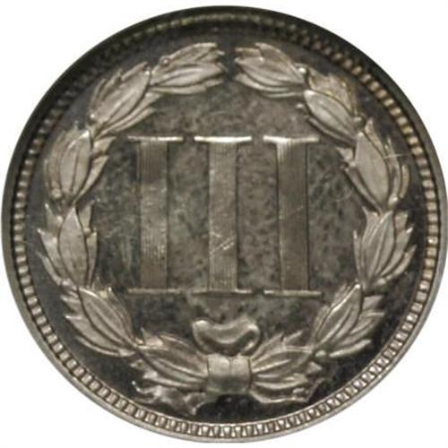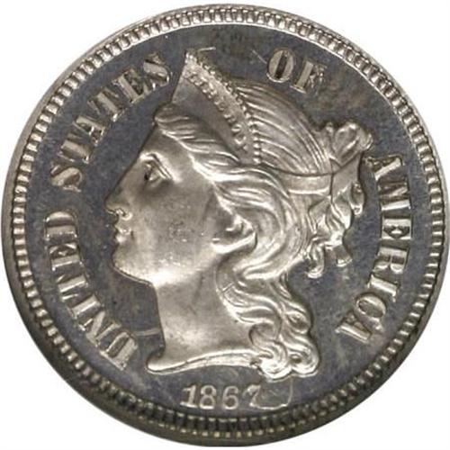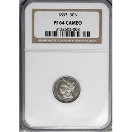 <B>1867 3CN PR64 Cameo NGC.</B></I> NGC Census: (9/47). PCGS Population (8/35). (#83763)<BR><BR><b>Shipping:</b> Coins & Currency (<a target="_blank" href="http://www.heritageauctions.com/common/shipping.php">view shipping information</a>)