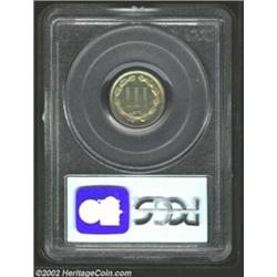 1867 3CN PR65 PCGS. Otherwise silver-gray in appearance, the surfaces reveal thin crescents of rainb