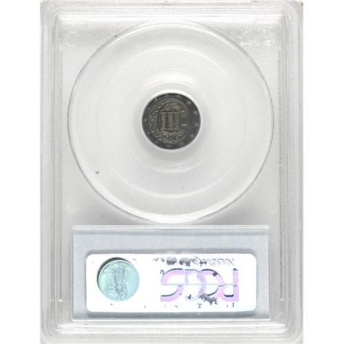 1867 3CS PR64 PCGS. Deep blue-green patina graces the