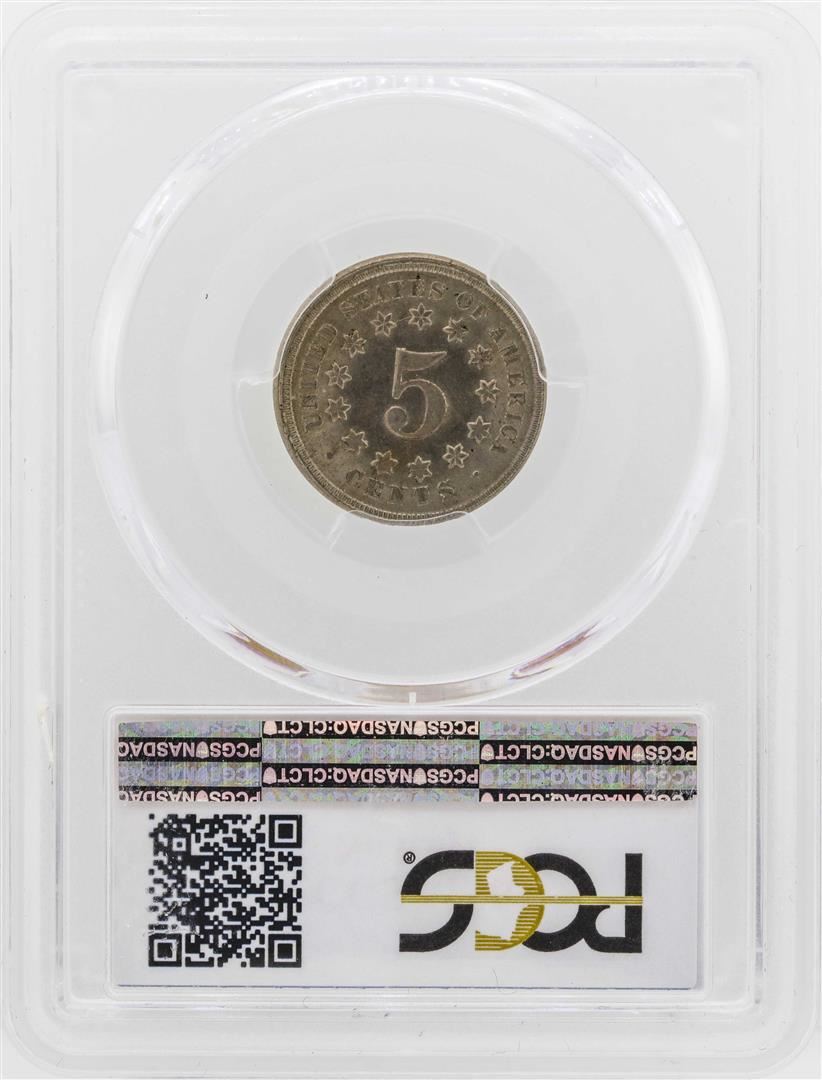 One 1867 5 Cent Shield Nickel No Rays Coin PCGS MS63. PCGS Certified.